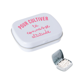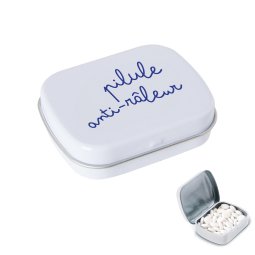 Petite par la taille, grande par l’effet ! Cette boîte à bonbons, c’est le combo parfait entre une bonne dose de sucre et un message qui fait mouche. “Remède contre le lundi”, “Pilules anti-collègues pénibles”, “T’es chiante mais je t’aime”... Chaque version a sa cible, et elle tape dans le mille.
