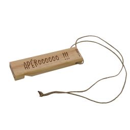 Ajoutez une touche de bonne humeur à vos moments de détente avec ce sifflet en bois gravé. Parfait pour siffler l'apéro ou demander un câlin, il est orné de textes humoristiques comme "C'est l'heure de l'apéro" ou "A table ! ". Idéal pour des soirées conviviales, des cadeaux originaux ou simplement pour faire sourire vos proches, ce sifflet est un compagnon amusant et pratique. Fabriqué en bois naturel, il allie charme rustique et fun décalé !