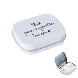 Ajoutez de la bonne humeur à votre quotidien avec la boîte à bonbons "La pilule du bonheur". Compacte (6,2 x 1,5 x 5 cm) et remplie de 23 g de bonbons à la menthe, elle apporte une dose de légèreté et de fraîcheur. Idéale pour offrir un sourire à vos proches.