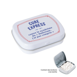 Boîte en métal blanc (6,2 x 1,5 x 5 cm) contenant 23 g de bonbons à la menthe. Une idée cadeau parfaite pour récompenser la patience et le dévouement d’un enseignant.