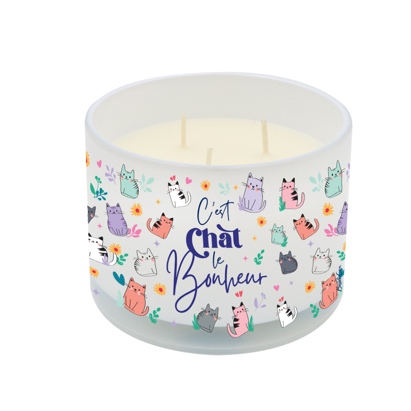 Une bougie adorable et parfumée pour les amoureux des chats. Parfum floral ou fruité selon la couleur. Cadeau parfait pour une ambiance douce et joyeuse.