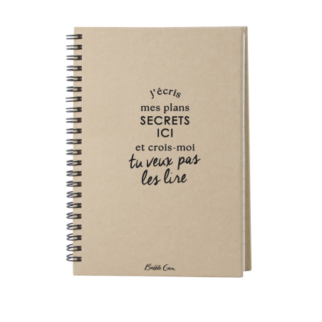 Carnet kraft cartonné, spirale robuste, format A5 (15 × 21 cm). Pages lignées pour des notes bien structurées. Parfait pour toutes les emmerdeuses officielles !