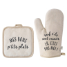 Le duo parfait pour les cuisiniers imparfaits ! En coton recyclé, ce gant et cette manique ajoutent humour et praticité à toutes vos recettes… même les ratées.