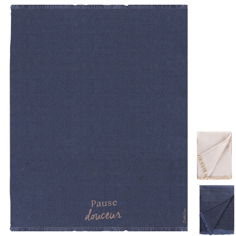 Plaid cosy en coton 260 g/m², imprimé en sérigraphie, format 125 × 150 cm. Un indispensable pour une pause douceur bien méritée.