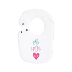 Le bavoir illustré et rigolo un peu de toi, un peu de moi, et voici le joli résultat protègera et amusera votre enfant lors de ses repas et goûters.
