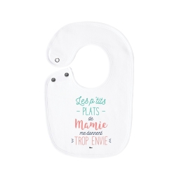 Le bavoir humoristique et rigolo Chouchou de Mamie protègera et amusera votre enfant lors de ses repas et goûters.