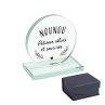 Trophée en verre imprimé, dimensions 10 × 10 × 6,5 cm, avec boîte cadeau rigide.