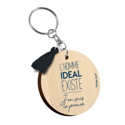 Porte-clés gravé en bois. Avec message. Dim. : 4,5 cm.