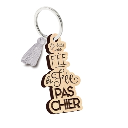 Porte-clés gravé en bois. Avec message. Dim. : 4,5 cm.