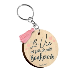 Porte-clés imprimé en bois. Avec message. Dim. : 4,5 cm.
