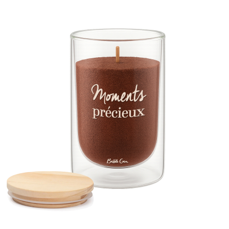Découvrez notre bougie sable présentée dans un élégant récipient double paroi (D. 8 x H. 13 cm), un véritable objet déco à lui seul. Ce contenant est rempli de 170 g de sable de bougie végétal, 100% naturel, vegan et respectueux de l’environnement. Il suffit de déposer l’une des 4 mèches réutilisables sur le sable pour créer instantanément une bougie propre et lumineuse. Après utilisation, laissez refroidir puis retirez simplement la cire fondue : le sable reste net, et votre bougie est comme neuve, prête à être rallumée encore et encore.