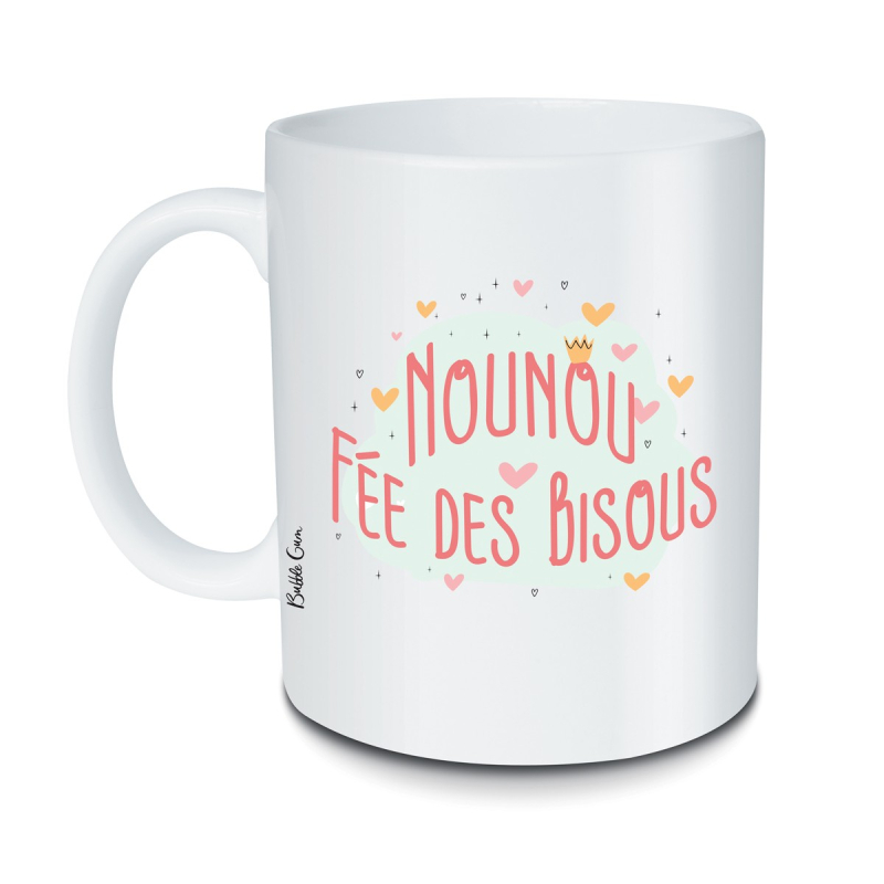 Ce mug nounou fée des bisous est un cadeau plein de douceur pour la super-nounou qui veille avec amour. Idée cadeau originale et pas chère, made in France.