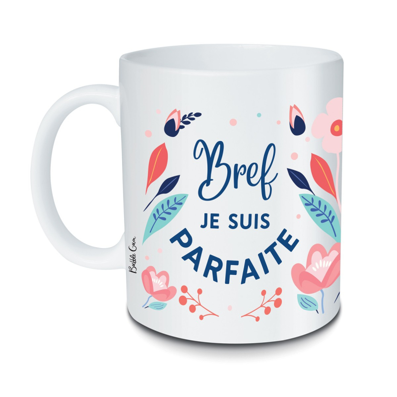 Le mug Bref je suis parfaite est un cadeau humoristique pour les femmes sûres d’elles.