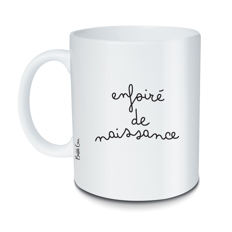 Le mug Enfoiré de naissance est fait pour les fortes têtes. Cadeau insolent et drôle.
