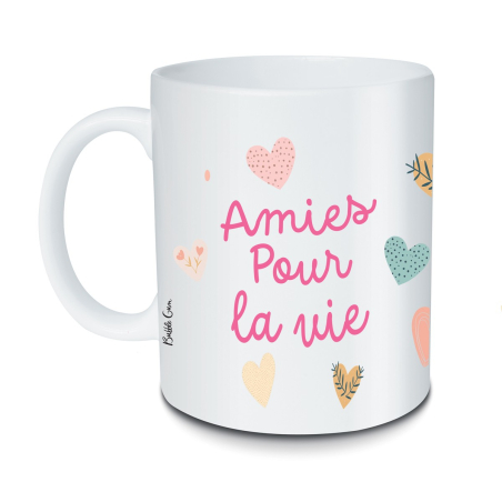 Le mug Amies pour la vie célèbre les amitiés éternelles. Cadeau complice, joyeux et pas cher.