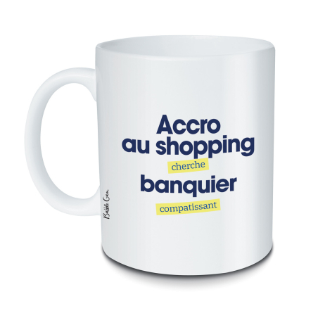 Mug Accro au shopping cherche banquier