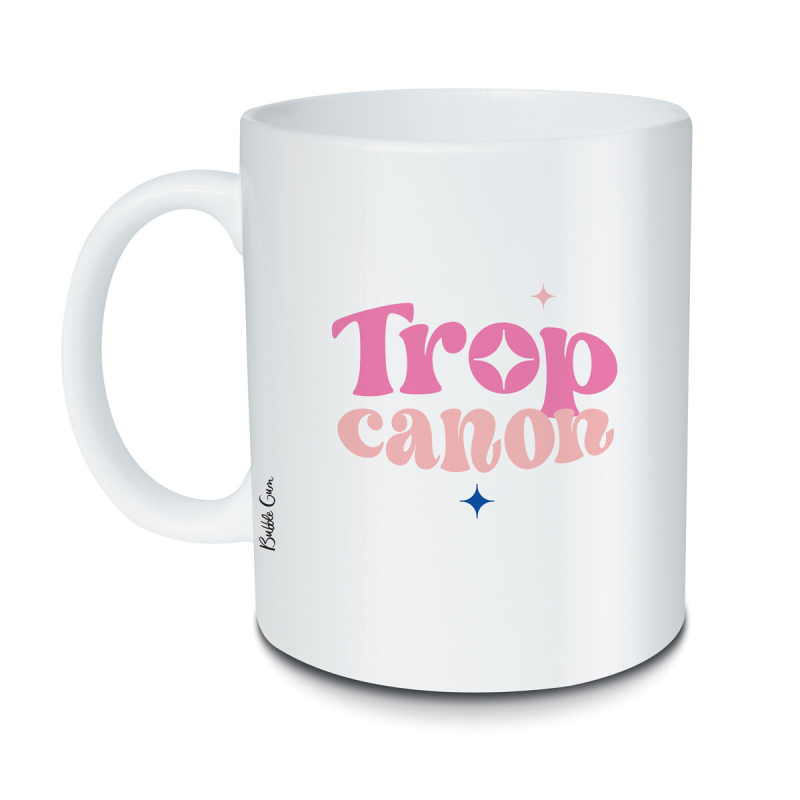 Le mug Trop canon, clin d’œil amusant pour les reines de la beauté et de l’humour. Cadeau original et fun.