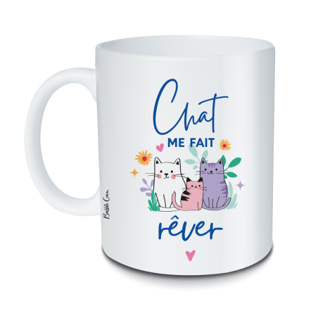 Le mug Chat me fait rêver, adorable et drôle, idéal pour les amoureux des félins. Cadeau mignon et pas cher.