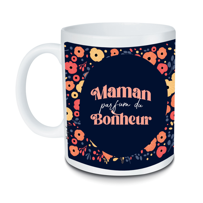 Le mug Maman parfum du bonheur, délicat et coloré, symbole d’amour et de douceur.