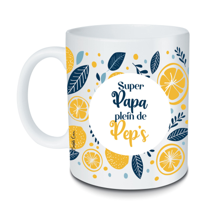 Le mug Super papa plein de pep’s célèbre les papas énergiques et pleins d’humour.