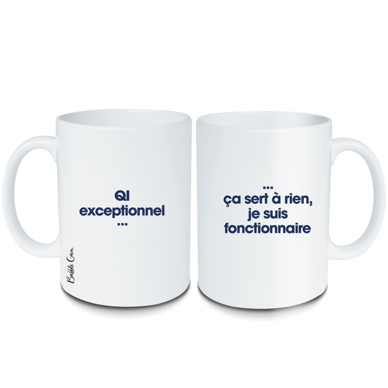 Le mug QI exceptionnel…ça sert à rien, je suis fonctionnaire, un classique pour rire entre collègues.