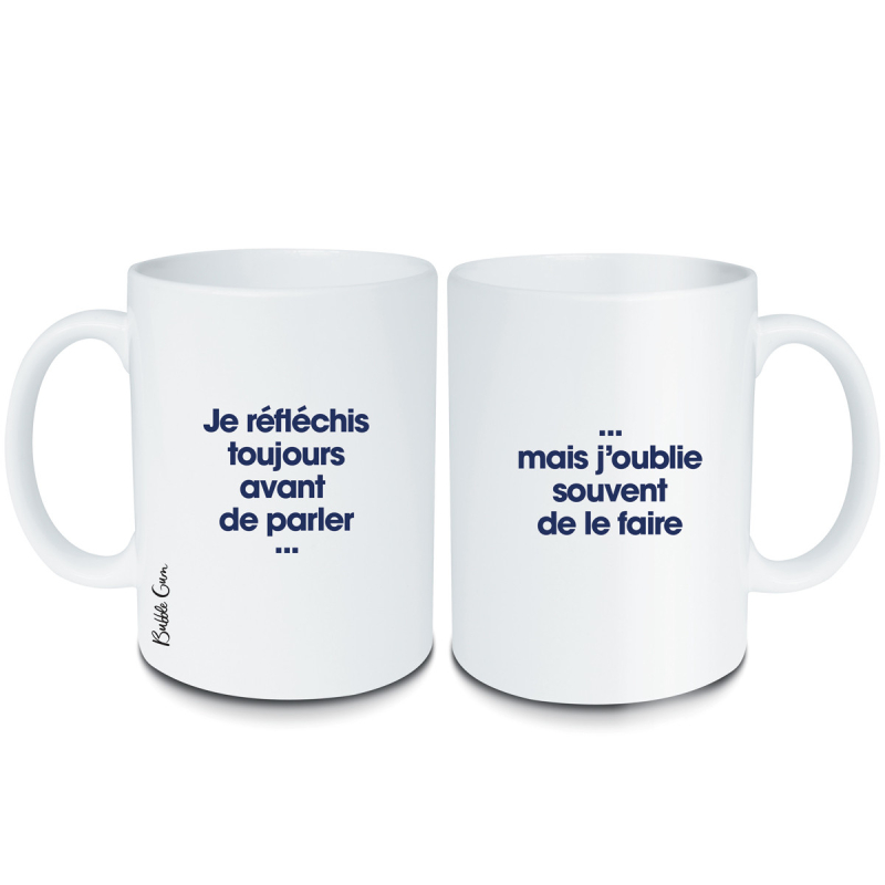Mug Je réfléchis avant de parler…mais j’oublie souvent de le faire