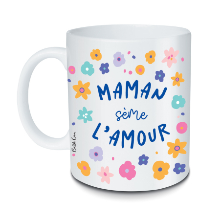 Le mug Maman sème l’amour, un message poétique et doux pour les mamans au grand cœur.