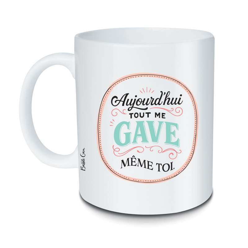 Le mug Aujourd’hui tout me gave, pour les matins sans filtre ! Cadeau humour et sincérité.