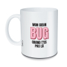 Le mug Mon cœur bug quand t’es pas là, tendre et geek à la fois. Cadeau original et romantique.