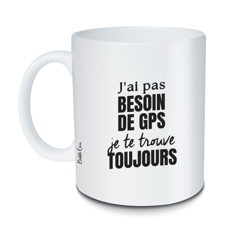Le mug J’ai pas besoin de GPS je te trouve toujours, romantique et drôle. Cadeau parfait pour amoureux.