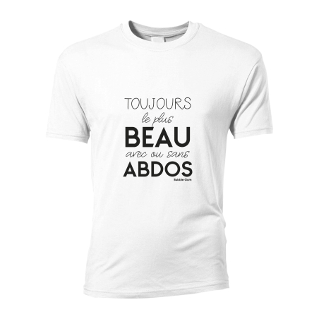 Un T-shirt fun et décomplexé. Parfait pour les hommes qui assument… peu importe les abdos.