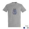 Tee shirt homme en coton 185 g/m², Col rond à bord côte. Bande de propreté au cou. Mesures des tailles: M: sous les aisselles: 53 cm, hauteur: 72cm. L: Largeur sous les aisselles: 56 cm, hauteur: 74cm. XL: Largeur sous les aisselles: 59 cm, hauteur: 76cm. XXL: Largeur sous les aisselles: 62 cm, hauteur: 78cm.