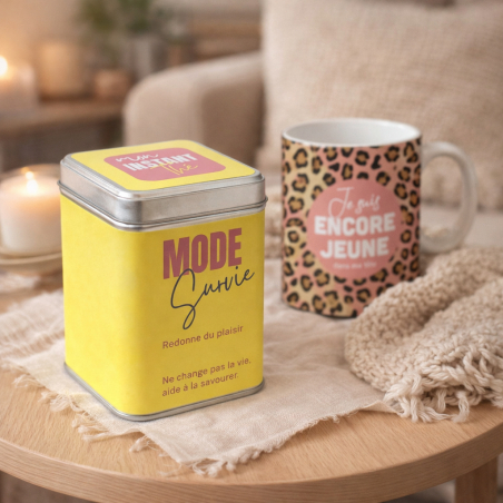 Fatigue, surcharge, journées trop longues… parfois, on passe en mode survie. La boîte Mon instant thé - Mode survie - Redonne du plaisir est là pour remettre un peu de légèreté dans votre quotidien. Son message humoristique parle à tous ceux qui tiennent bon… avec style. Elle contient 80 g de thé vert Sencha aux notes fruitées, parfait pour faire une vraie pause et se reconnecter à soi. Sa boîte en métal en fait une idée cadeau originale et pleine de sens. Caractéristiques : Boîte en métal avec message humoristique